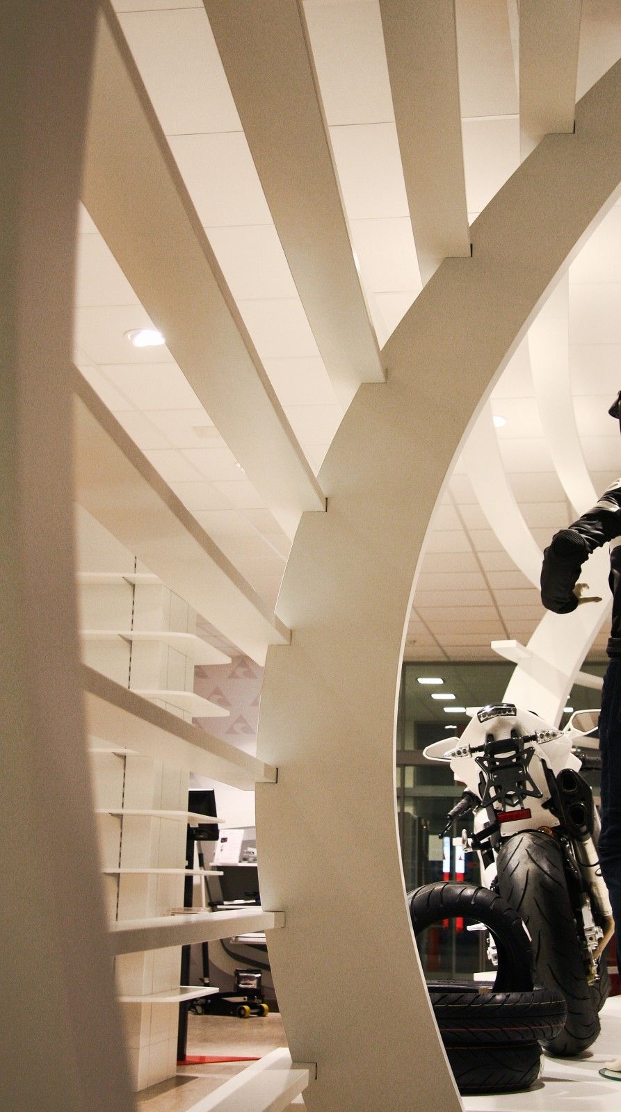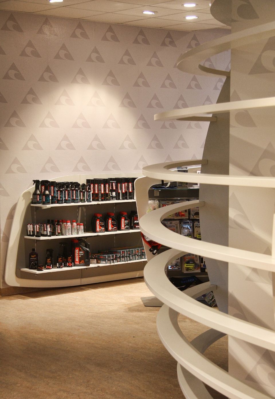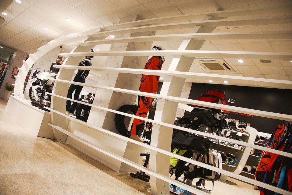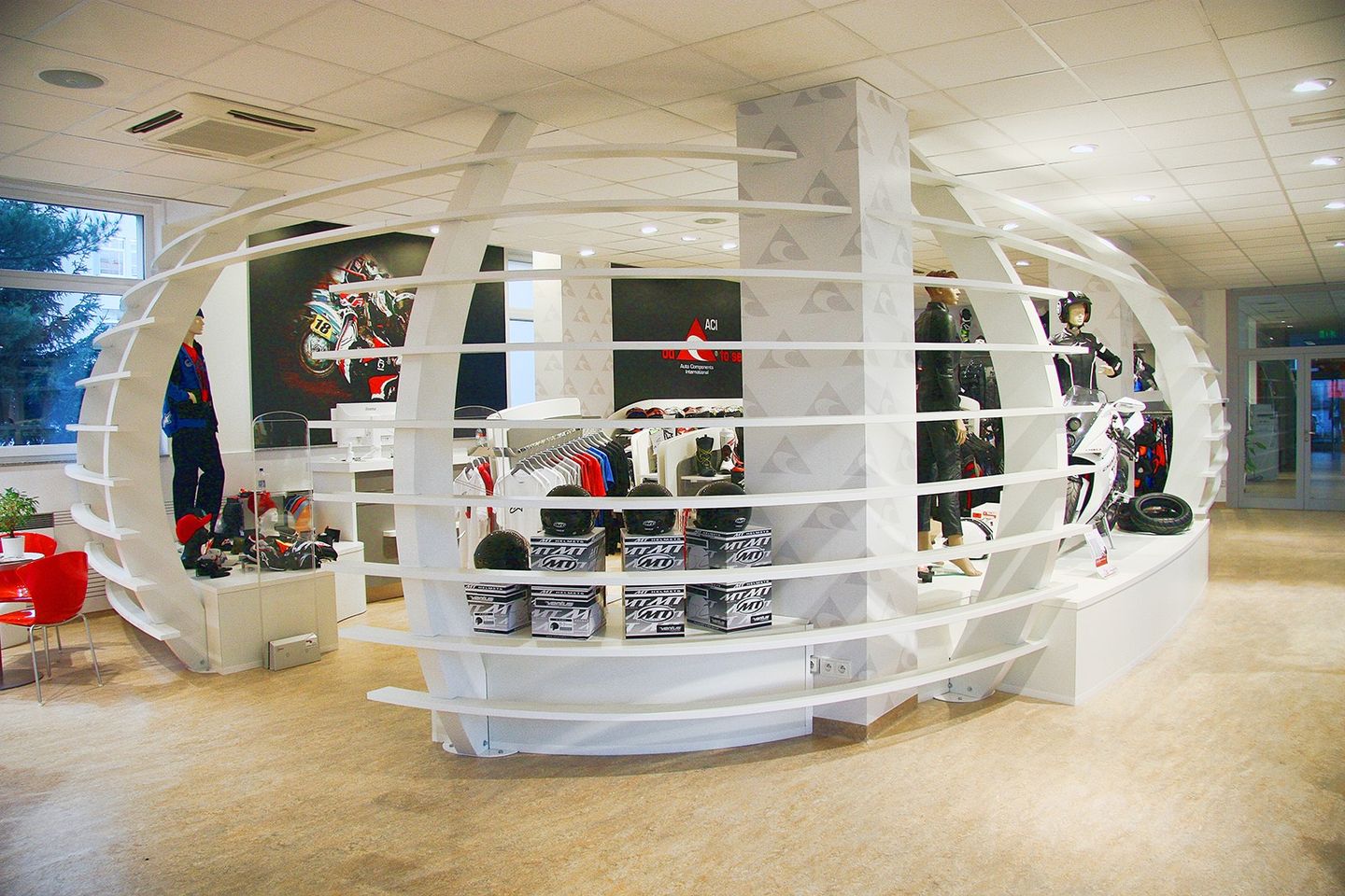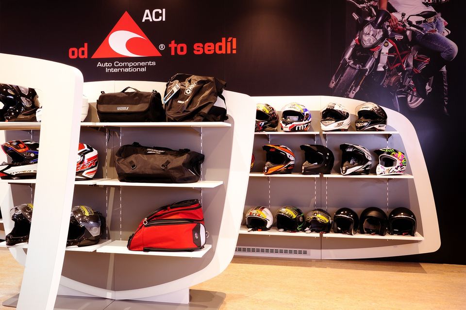 Pro ACI jsme zmodernizovali showroom a call centrum. Inspirací pro automobilovou sekci nám byly tvary interiérů aut v moto sekci jsme vycházeli z tvarů helmy a žebrování motoru. Helmu jsme znázornili výrazným prvkem tvořeným žebrováním, zákazník se tak ocitá ve svém světě, stejně jako když si nasadí helmu a vydá se za dobrodružstvím...