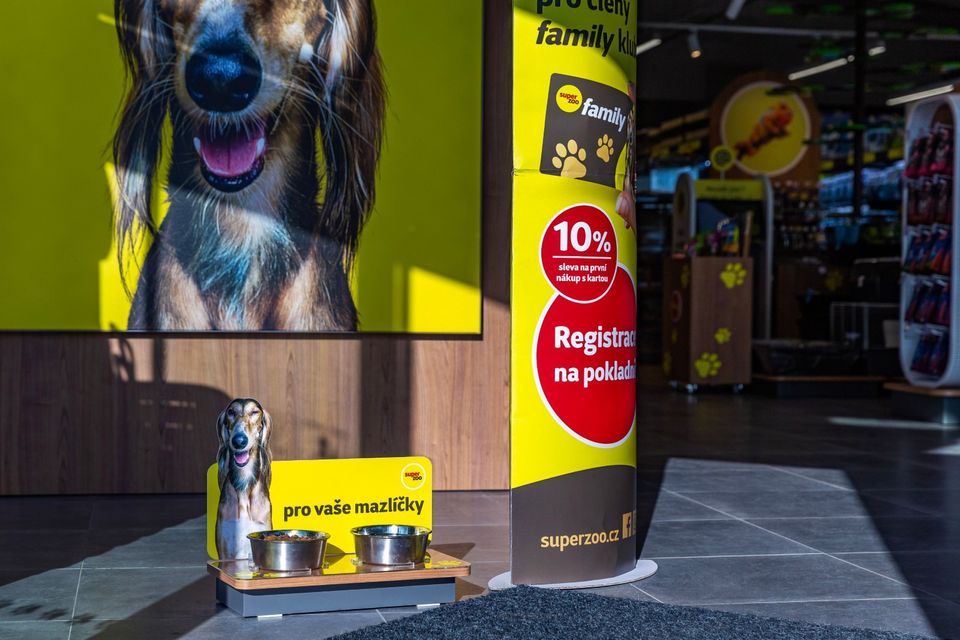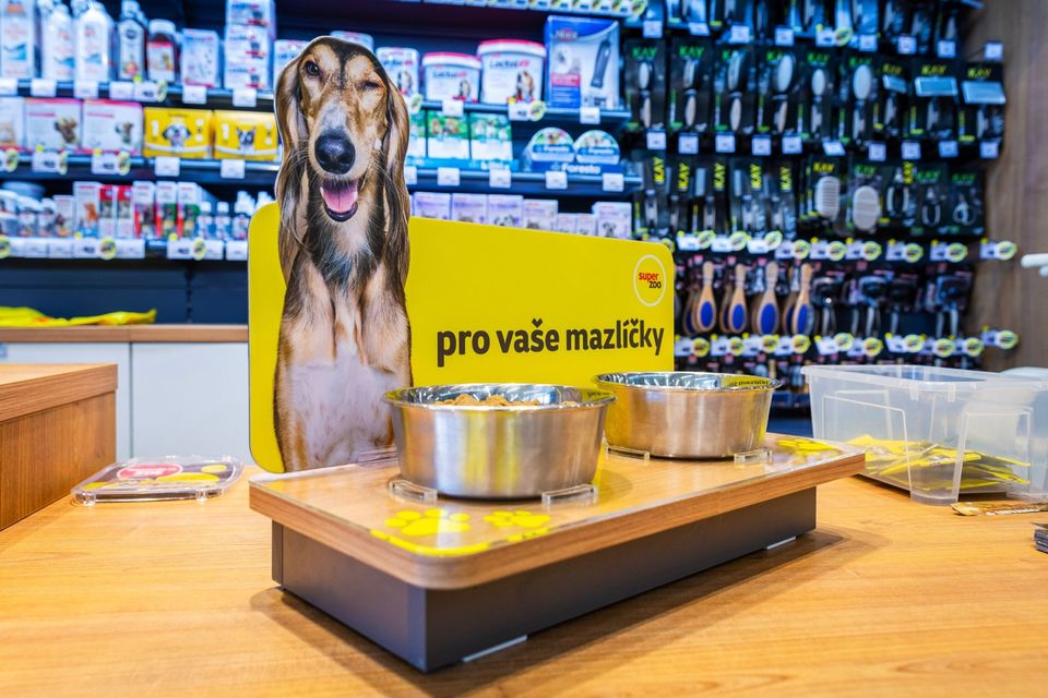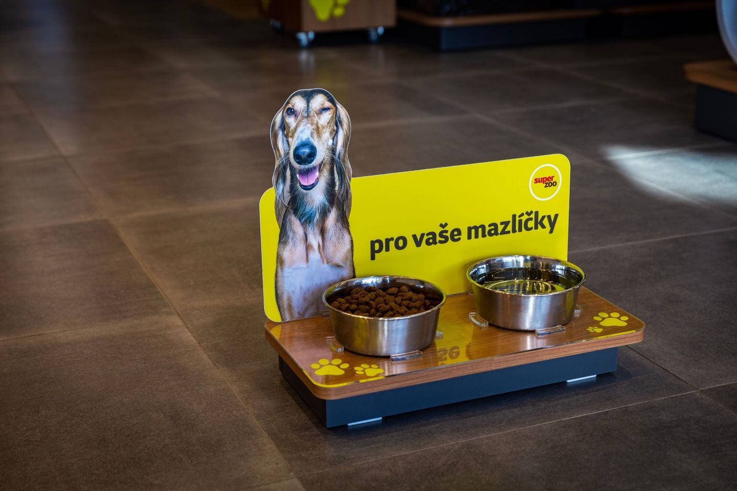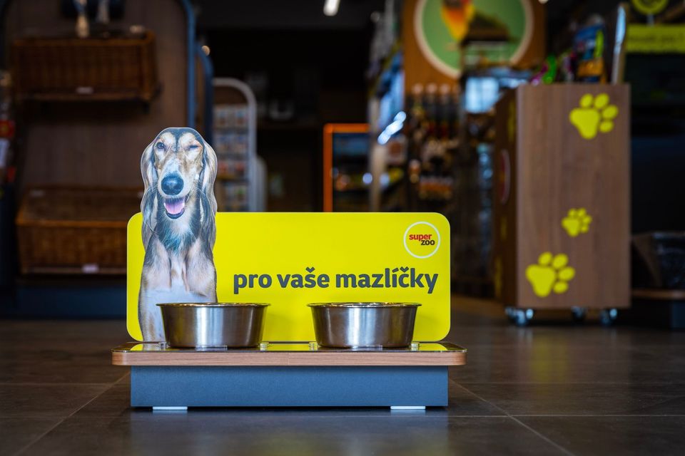 Unikátní koncept stojanu na misky pro psy, který splňuje dnešní trendy v oblasti Pet Food. Našim cílem bylo, aby klient měl adekvátní marketingovou komunikaci i pro koncového spotřebitele. Díky stojanu na misky, který je určen k občerstvení psích mazlíčků, dochází k umocnění příjemného pocitu přímo v obchodě SUPER ZOO. Zákazník tak má možnost v klidu si prohlédnout veškeré produkty, aniž by ho domácí mazlíček vyrušoval z nákupu. Zároveň dochází k oslovení psích mazlíčků přímo na místě díky pamlskům a zanechává v nich příjemný pocit spojený s tímto místem. Stojan na misky je umístěn v prostoru obchodu, a proto je kladen důraz i na vizuální identitu značky SUPER ZOO.
