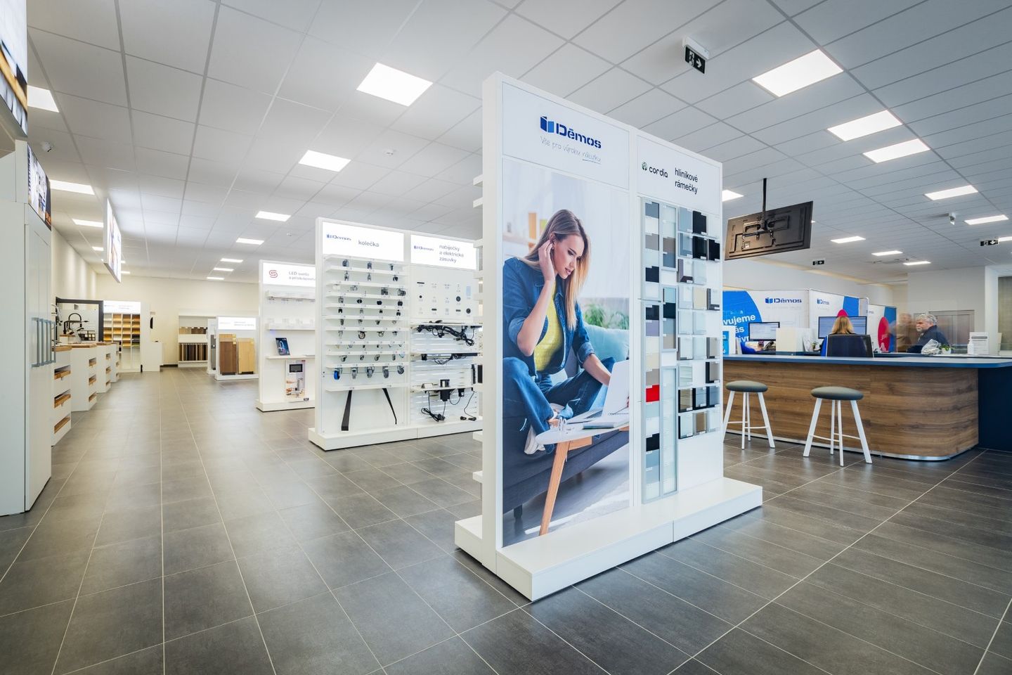 U prodejny Démos nás čekal nelehký úkol – vytvořit jedinečný moderní prostor kombinující potřeby B2B a B2C zákazníků. Spojit velký showroom a prodejnu pro koncové zákazníky. Obě skupiny mají svá specifika a žádná z nich se nesmí cítit opomíjená nebo znevýhodněná. Začali jsme tedy vytvořením přehledné zákaznické cesty pro obě tyto skupiny, což byl i hlavní bod celého re-designu.