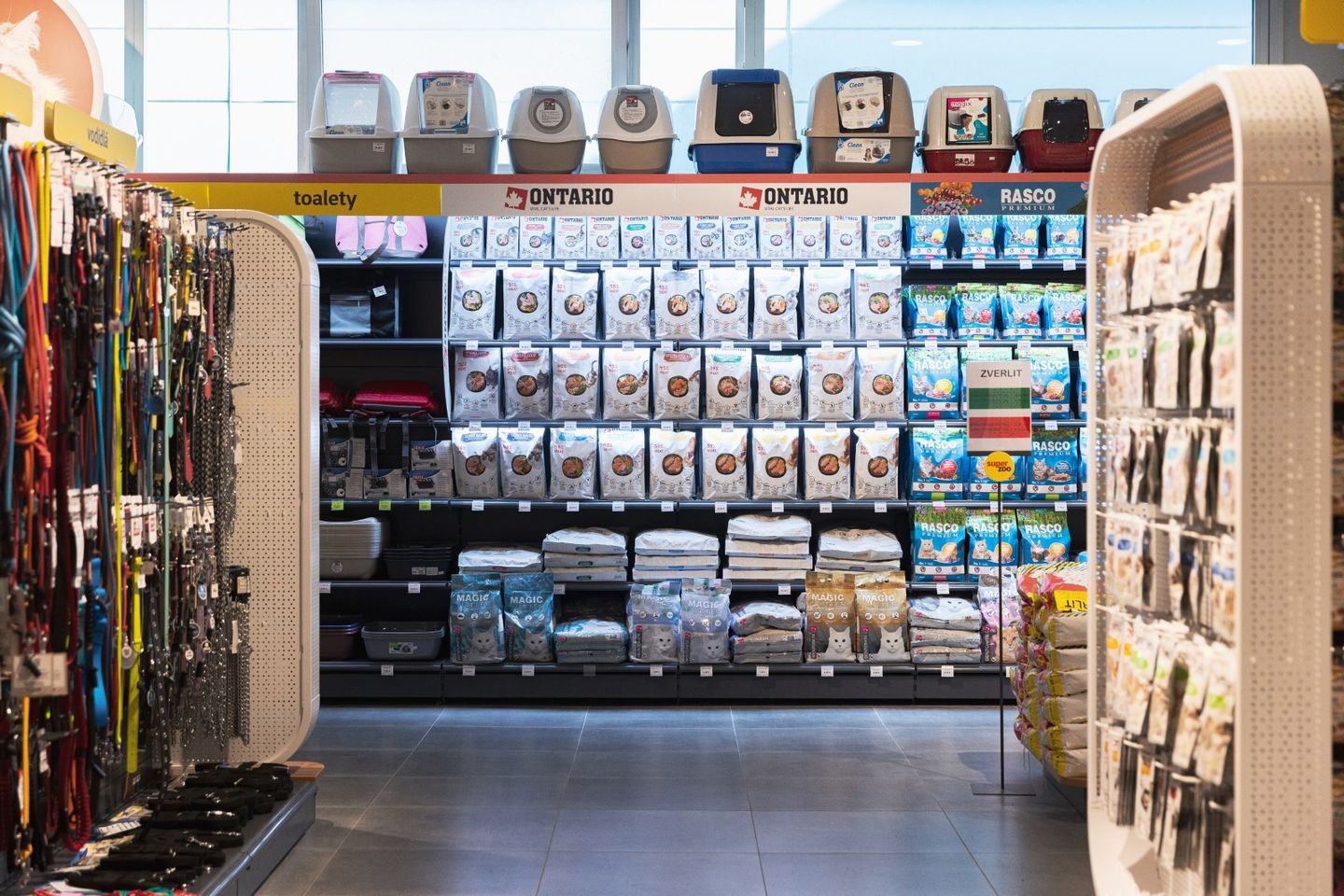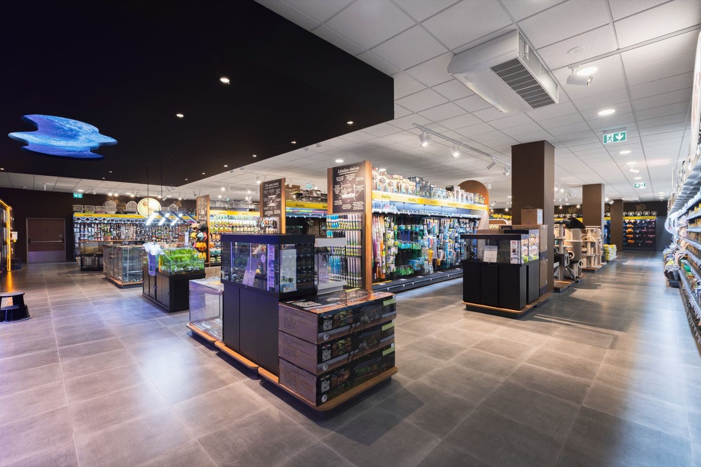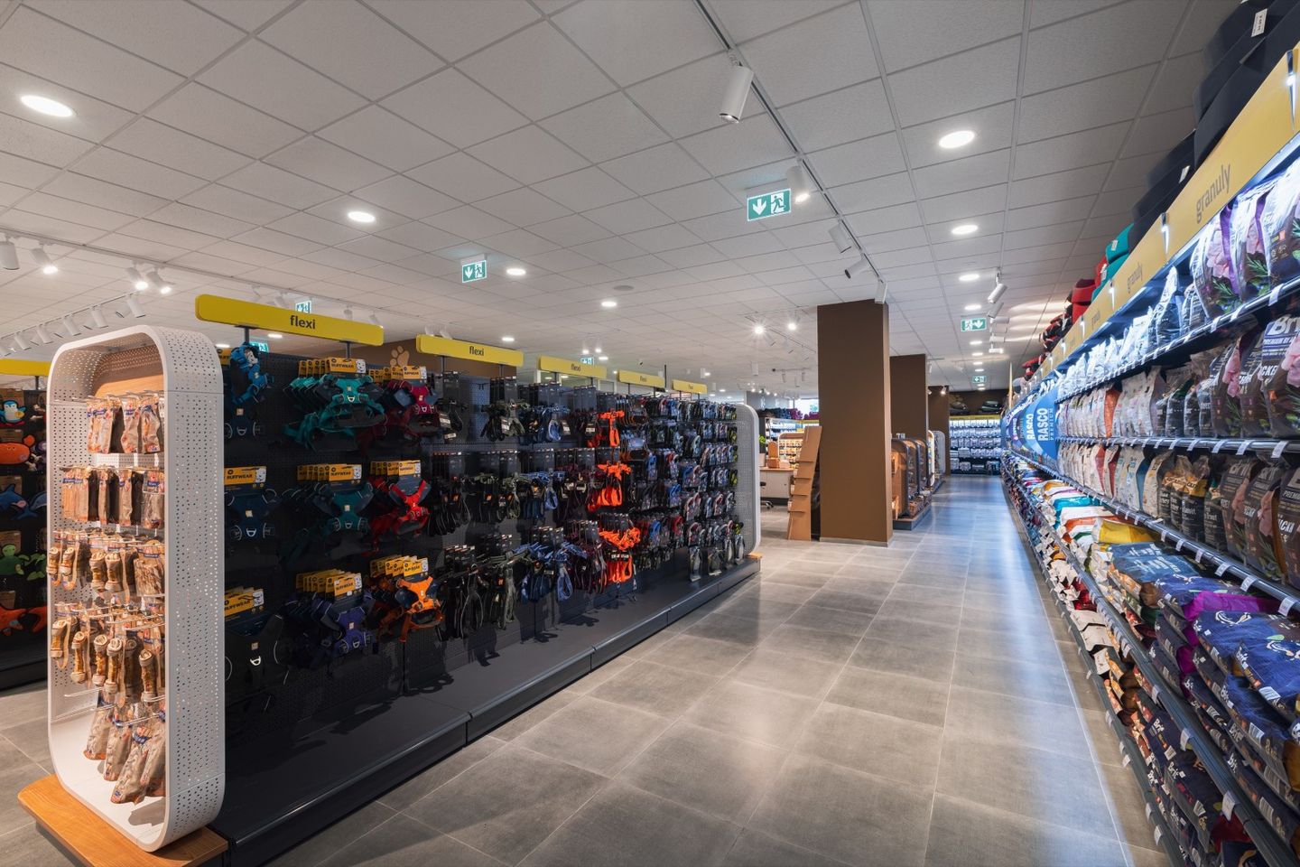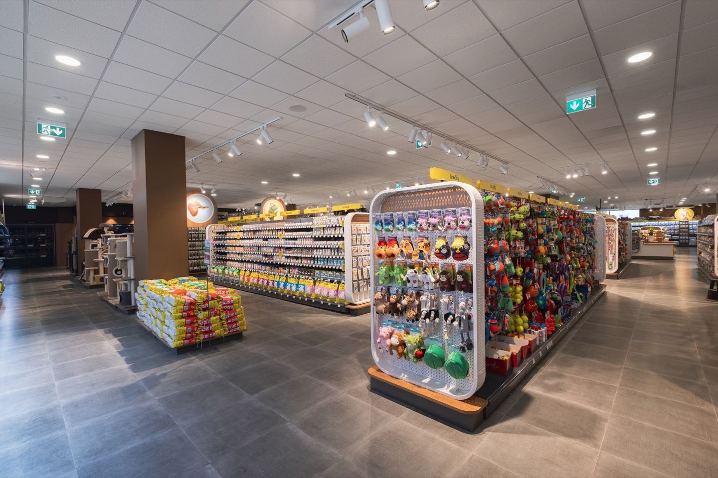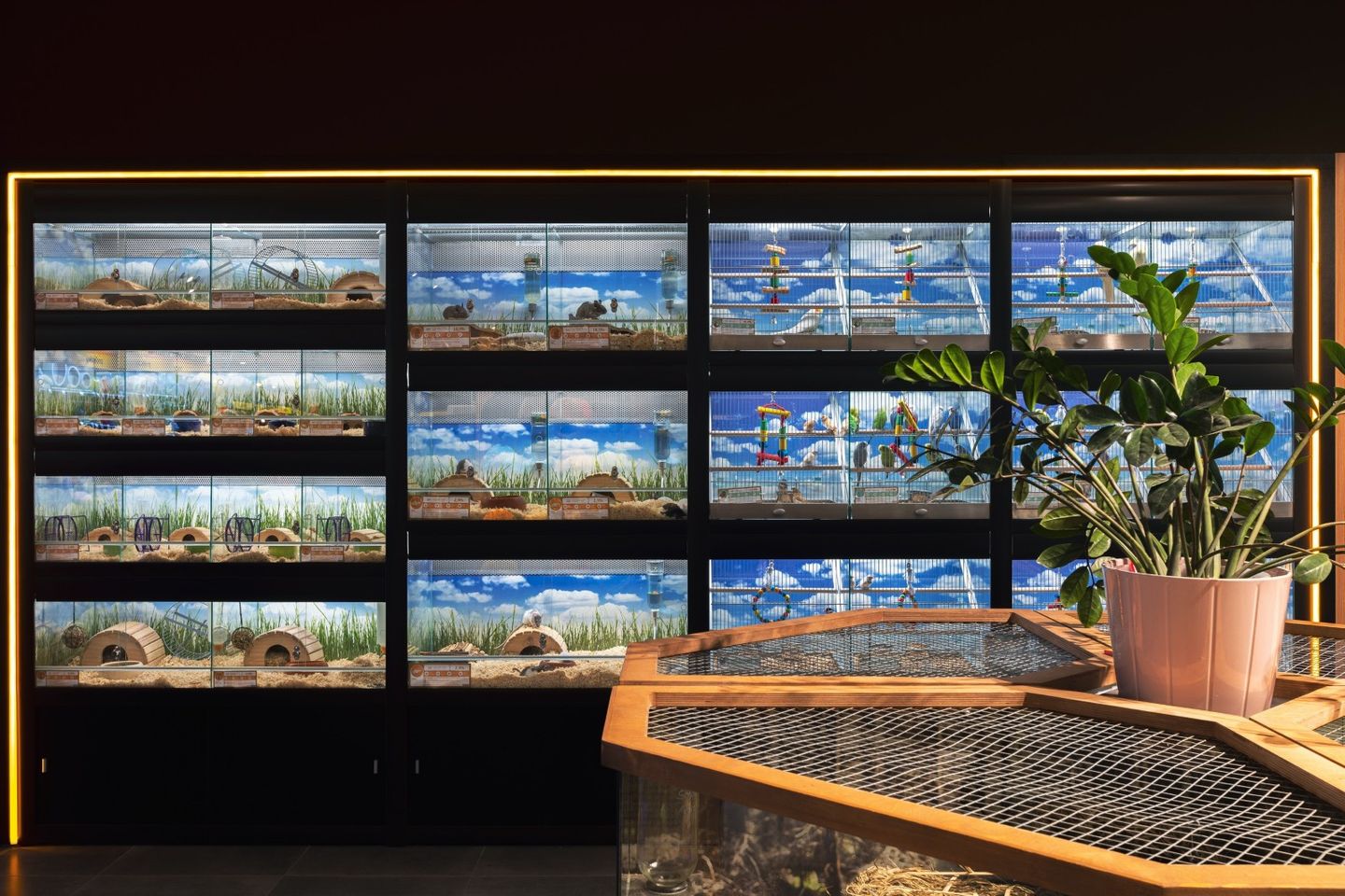 Orientaci na prodejně jsme podpořili informační grafikou a edukativními prvky z naší dílny signmakingu. Velké cedule s vyobrazenými jednotlivými mazlíčky jasně ukazují, kde najdou zákazníci potřeby pro kočičku, psa, papouška nebo rybičky. Členění prodejny je tak zákazníkovi zřejmé hned u vstupu. Podkategorie sortimentu pro jednotlivá zvířata jsou pak jasně značena na regálech. Důmyslné rozestavění gondol, prodejních stojanů a regálů pak nenásilně zákazníka provede celou prodejnou.
