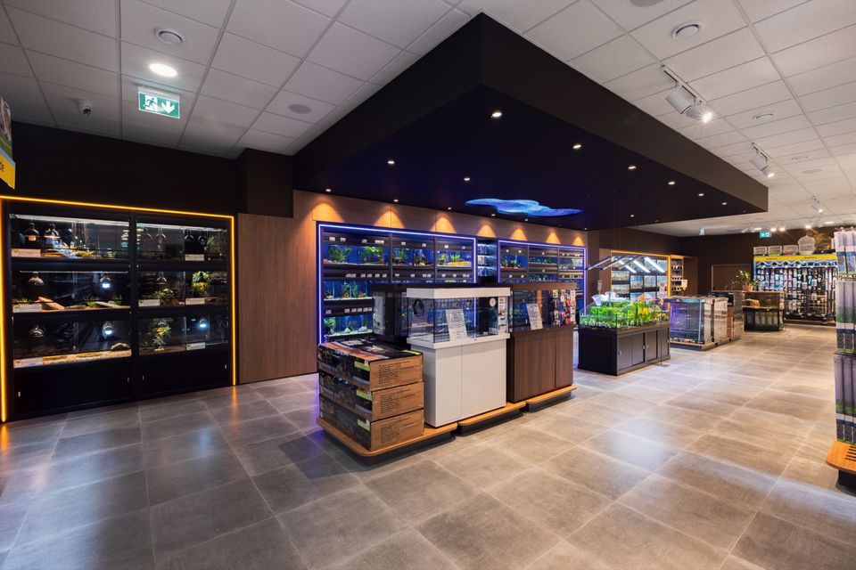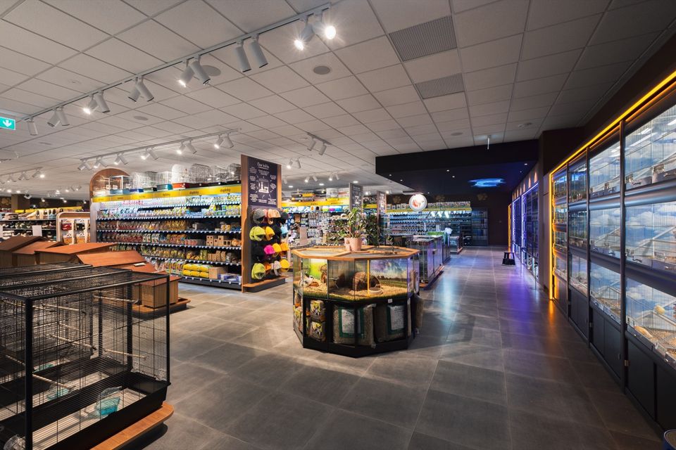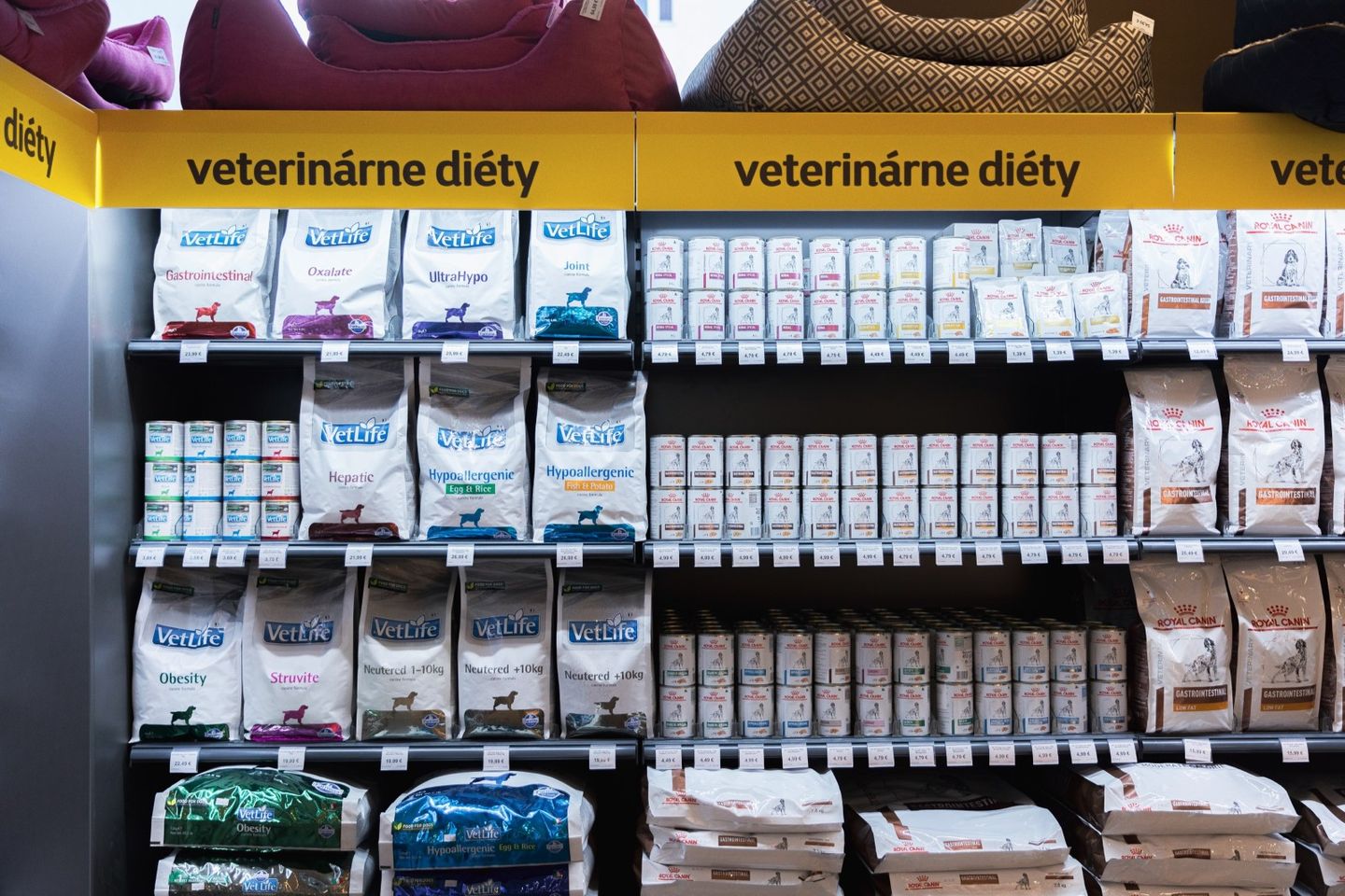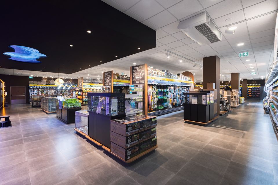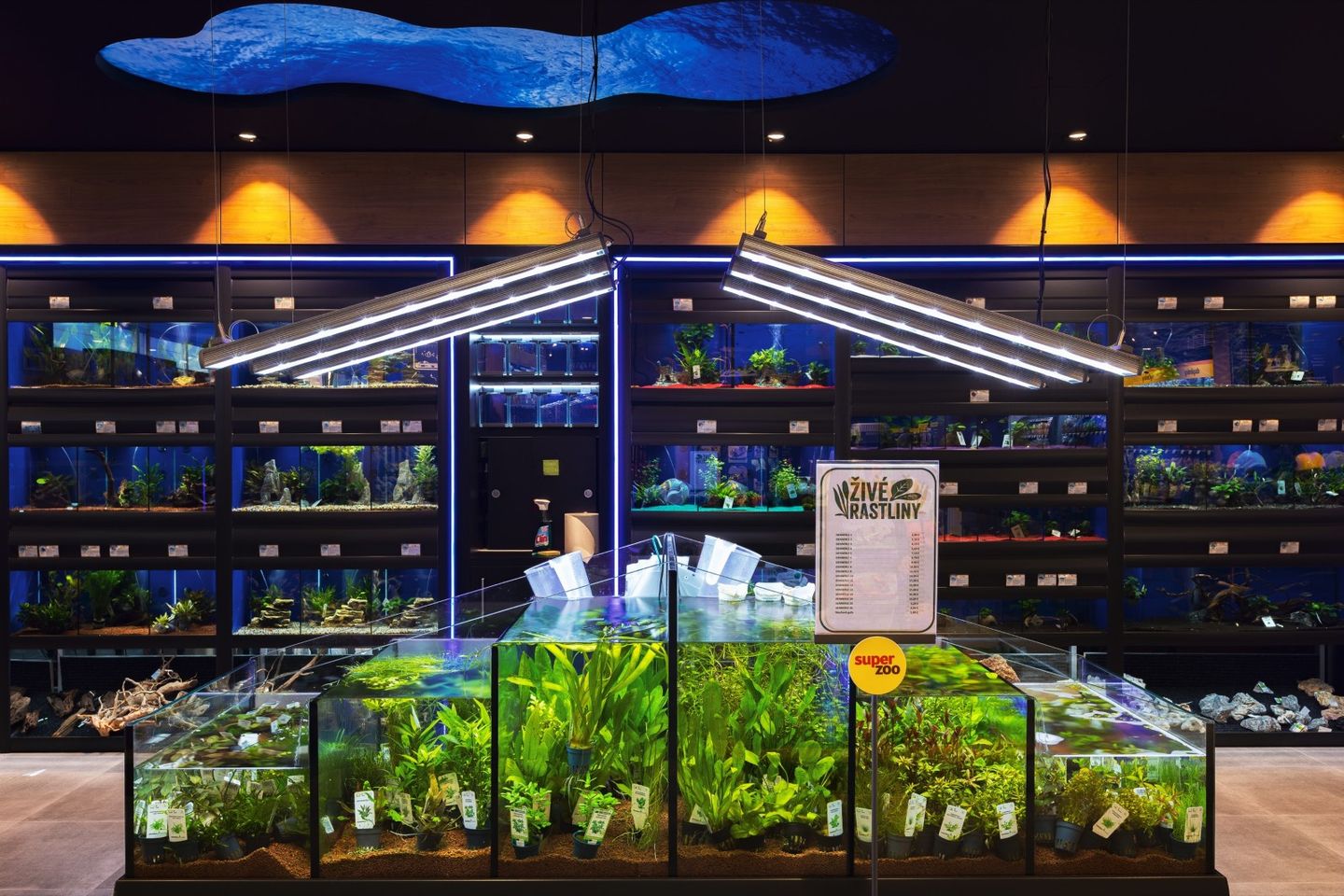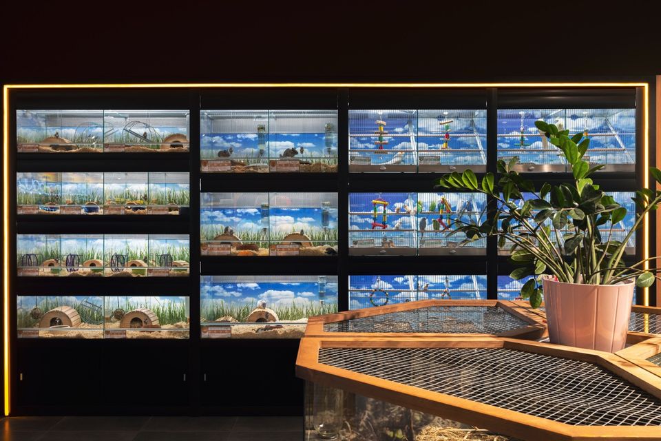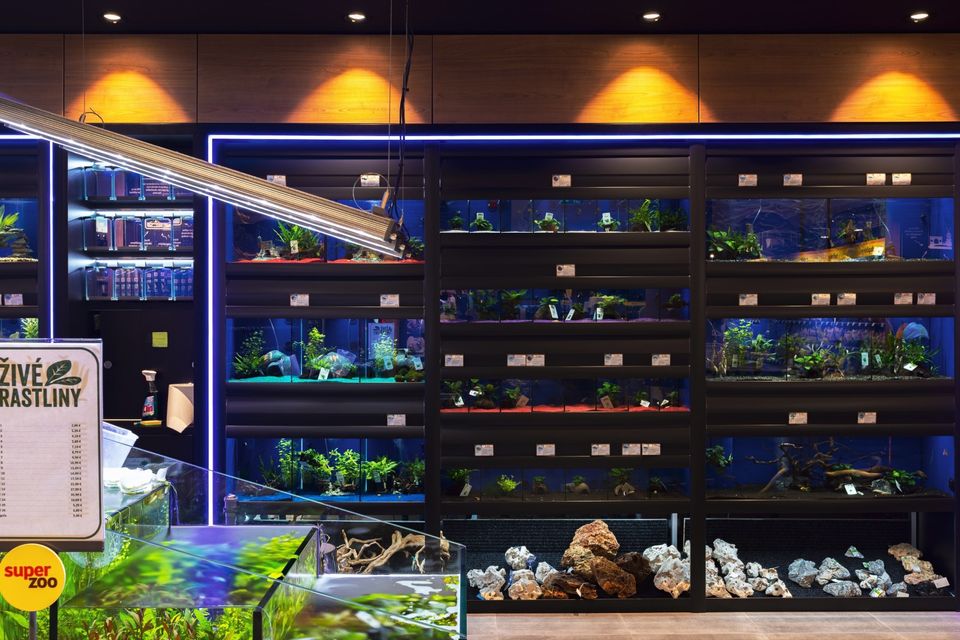 Orientaci na prodejně jsme podpořili informační grafikou a edukativními prvky z naší dílny signmakingu. Velké cedule s vyobrazenými jednotlivými mazlíčky jasně ukazují, kde najdou zákazníci potřeby pro kočičku, psa, papouška nebo rybičky. Členění prodejny je tak zákazníkovi zřejmé hned u vstupu. Podkategorie sortimentu pro jednotlivá zvířata jsou pak jasně značena na regálech. Důmyslné rozestavění gondol, prodejních stojanů a regálů pak nenásilně zákazníka provede celou prodejnou.